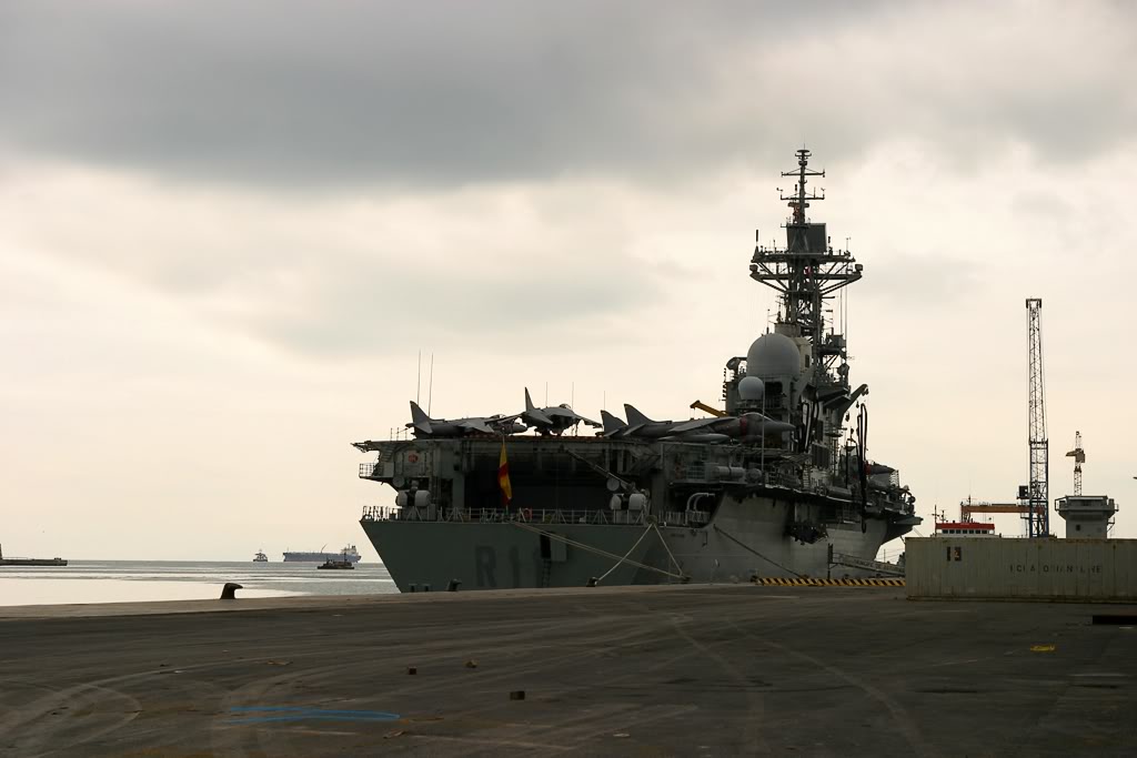 The Spanish aircraft carrier Principe de Asturias, made a port visit in Civitavecchia on February 17th and 18th 2007. The ship made a stop in Italy before taking part in aย multi-nationalย naval excercise in the Tyrrhenian sea. Giovanni Maduli was in Civitavecchia to take a few pictures of the aircraft carrier and the accompaining vessels and witnessed the presence of many other ships among which the Portuguese frigate “Vasco de Gama”, the Spanish frigate “Almirante Juan de Borbรณn”, the Spanish fast support ship “Patino” andย the French destroyer “Jean Bart”.