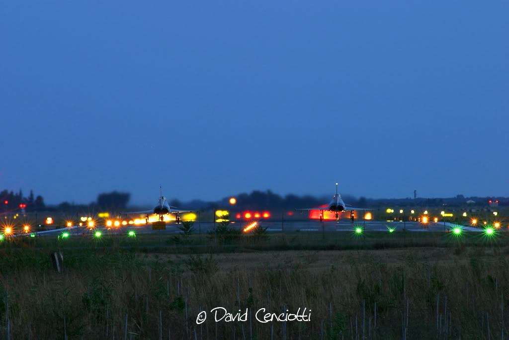 This is the sight of a night take off of a pair of Eurofighter Typhoon from Grosseto airbase. Picture was taken on August 06th 2007 at 9:10PM LT.