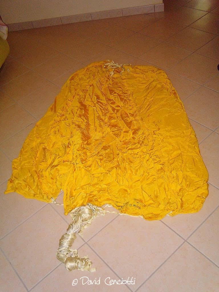 The seller explained that her uncle, a former F-104 pilot, gave it to her and she had twice of them (I also saw a picture of the other one that was identical to the one I purchased) and for a short time I thought it could also be the pilot’s own parachute, the one used with the C-2 ejection seat, even if the previous and current C-9 canopies are white, green, orange, larger and most probably thinner than the Hoffman one.
