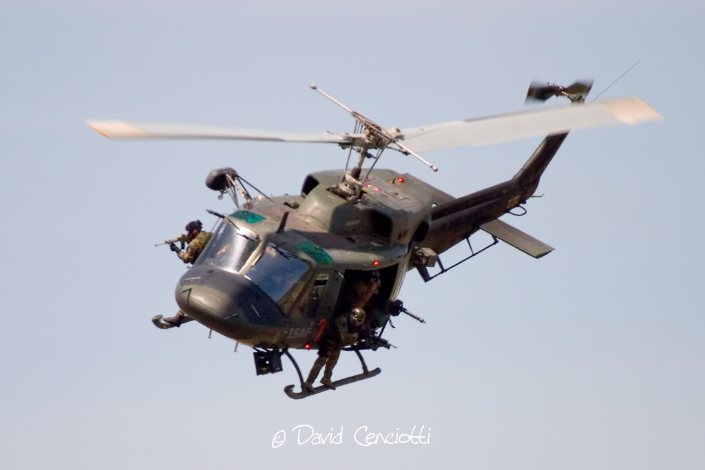 Blessed with good weather, this year’s edition of the Giornata Azzura was attended by more than 200.000 people on May 25. The two UAE Mirage 2000s and the accompanying C-130 were the most rare aircraft attending the show. The aircraft had arrived in the evening of May 23, even if there were rumors that the aircraft were scheduled for May 22, followed by the grey C-130. Pilots and military personnel were extremely polite, answered to all the questions made by the public and (unlike many others that sell their expensive Squadron’s memorabilia) offered the public a lot of presents (pins, stickers, etc), a sign of the prosperous Arab economics. Among the most photographed aircraft were the Romanian Air Force Mig-21 and AN-26 (arrived on May 23 after a stop in Istrana), the SH-3D in Special Colour scheme of the Belgian Air Force and the Turkish AF F-5 (that had arrived on May 22). The air display was focused on the tactical event that was described on a previous post on this site and that particularly interesting since it involved HH-3F, AB.212ICO, AMX, C-27J, C-130J, Tornado and F-2000 of the Italian Air Force in a simulated blitz to take an airport located at the border between two fighting countries. According to Pierfrancesco “Fats” Grassi, an F-16 driver of the 10th Gruppo, the Danish F-16 made one of the most technical display, not as “powerful” as the ones of the Belgian and Dutch Vipers, but probably more difficult. Other interesting displays were those of the Alenia M-346 , the AAR (Air to Air Refueling) demonstration of the KC-130J of the ItAF, the display of the CL-415 of the Protezione Civile, the Italian Army A-129s and Navy AV-8B and EH-101 ones, the one of the Italian Eurofighter, the Polish Team Orlik and the Patrouille de France and Frecce Tricolori. Unlike advertised, the B-1B did not perform the expected flyby, there was no B.767 used for the qualification of the ItAF pilots waiting for the delivery of the first KC-767 and there was no RAF Typhoon in static.