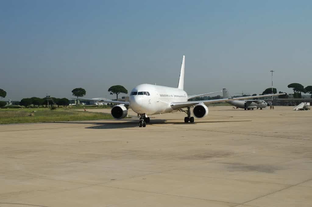A white Boeing 767 landed on Jul 1 at Pratica di Mare airport coming from McConnell AFB, Wichita, Kansas. The aircraft, serialled N606TW, according to FlightAware (http://flightaware.com/live/flight/N606TW) flew the following route: