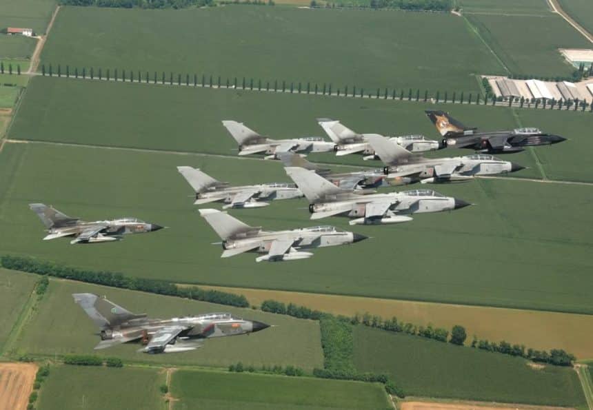 The “Tonkas” of the 156ยฐ Gruppo arrived in their new base from Gioia del Colle with the escort of 2 F-2000 Typhoon of the 12ยฐ Gruppo (the other unit of the Gioia-based 36ยฐ Stormo) and were welcomed by a flight of 2 Tornado of the 6ยฐ Stormo. With 3 Sqns on a MOB (Main Operating Base) and a flight line of around 30 aircraft, Ghedi represents one of the most interesting and active airbases in Italy. However, for the moment at least, it will not be the only Tornado base in Italy since the ECRs of the 155ยฐ Gruppo will remain in Piacenza, home of the 50ยฐ Stormo (even if they were recently compelled to move to Cameri because of the works interesting their homebase).