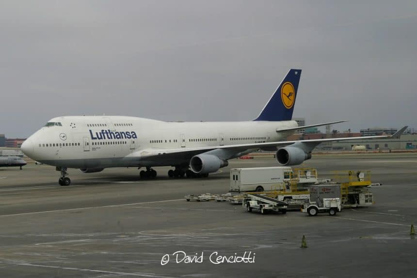 I took the following picture of a Lufthansa B747-400 through the window of the International terminal at Los Angeles International airport