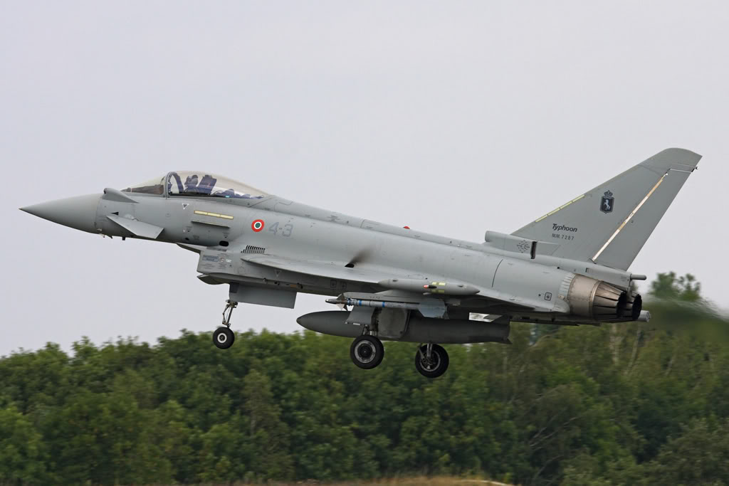 Twice during the last month, two Italian Air Force F-2000s (it must be remembered that according to the Mission Design Series, the Italian single seat Typhoon is designated F-2000A while the dual seat is TF-2000A) belonging to the 4° Stormo visited the German base of Neuburg during a week-end cross country.
