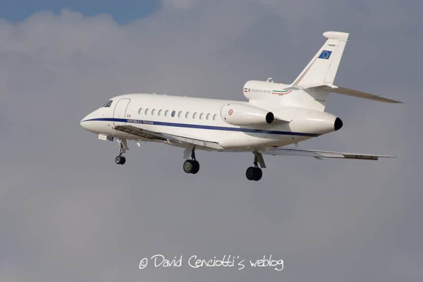 An Italian AF Falcon 900 overshoots at Ciampino
