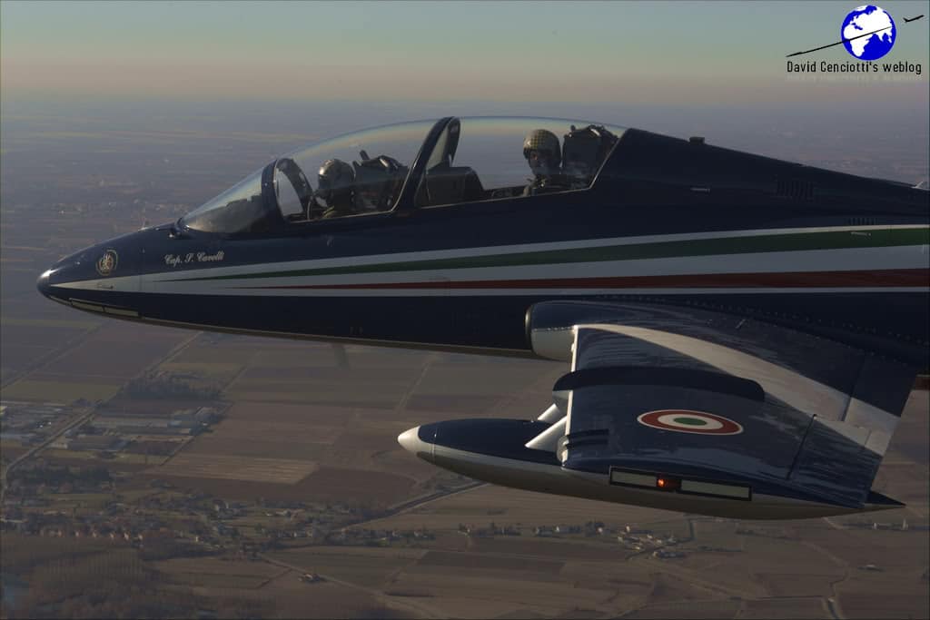 In Jan. 2006 I went to Rivolto airbase to visit the Frecce Tricolori and to report about the Winter Season and the training activities performed by the pilots of the display team. Here’s the full article (in Italian) that I wrote for Rivista Aeronautica: Alla scoperta delle Frecce Tricolori. During the visit, I had the possibility to fly with Col. Tarantino (who was “Pony 0”, the Commander of the team) an acrobatic 2 ships training mission. During the flight I had the possibility to pilot the MB.339, performing formation looping, roll over, etc. and then I was showed by Tarantino some famous maneuvers, like the Lomcovak and the Tail Slide. During the orientation mission, flying with Maj. Cavelli in the other aircraft was the photographer of the Frecce who took the following interesting pictures of my experience with the Italian display team.