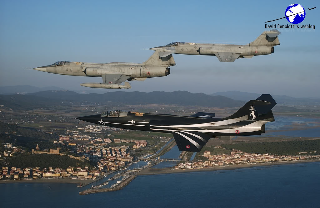 “Katsuhiko Tokunaga began his aerial photography career in a T-33A jet trainer. Since then, he has covered the high-performance military jets of twenty-six nations, concentrating on air-to-air photography. In addition, he has taken official pictures for foreign aircraft manufacturers, air forces, and navies. He has also worked on the production and direction of many aviation videos. His published work appears in magazines in Japan and in other countries. Based in Tokyo, he has accumulated over 800 flight hours in high-performance jets, among them the F-16. He has also flown with and photographed USAF Thunderbirds, Japanese Blue Impulses, USN Blue Angels, Canadian Snowbirds, British Royal Air Force Red Arrows, French Patrouille de France, Italian Frecce Tricolori, Swiss Patrouille Suisse, Portuguese Asas de Portugal, Spanish Patrulla Aguila, Swedish Team 60s, Yugoslavian Letece Zvesdes, Slovak Biele Albatrosys, and Swiss PC-7 Team”. Since 2000 he has taken thousands more breathtaking pictures (something we can define “works of art”). I’ve obtained by him and by Gen. Gagliano of the Aeronautica Militare (Italian Air Force), the authorization to publish a selection of the images “Katsu” took in the last years with the ItAF. All pictures have this website’s logo just to prevent unauthorized usage. The following is just a selection of the picture Tokunaga took in 2004 flying with the F-104 of the Grosseto-based 4ยฐ Stormo.