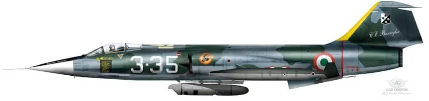 Ugo Crisponi is a famous Italian illustrator who manages the AVIATIONGRAPHIC.COM, a guild of Aviation Artists & Illustrators offering more than 1.500 Squadron Prints, Lithographs, Illustrations and Aviation Art. Most of them are official lithos expressely made for U.S. Air Force, U.S. NAVY, U.S. MARINE CORPS, Luftwaffe, KLU, HEER, AMI, and lots of other Squadrons and Airborne Law Enforcement Units worldwide, from Italian State Police to Sacramento Police Department, Dutch Aviation Police, Italian Carabinieri Nuclei Elicotteri, Calgary Police Air Services, Gainesville Police Department, etc. Ugo designed the following collection of profiles that are particularly interesting since they show different colour schemes, configurations and markings of the F-104 G, S, ASA and ASA-M of the Aeronautica Militare (Italian Air Force, ItAF).ย They are useful for both modelers, historians and Starfighter enthusiasts.ย Each profile has a corresponding artwork (or ” Squadron print”) that contains information of the depicted Squadron. The collection of F-104 prints, courtesy of Aviation Graphic, is available at the following page: http://cencio4.wordpress.com/f-104-prints/.