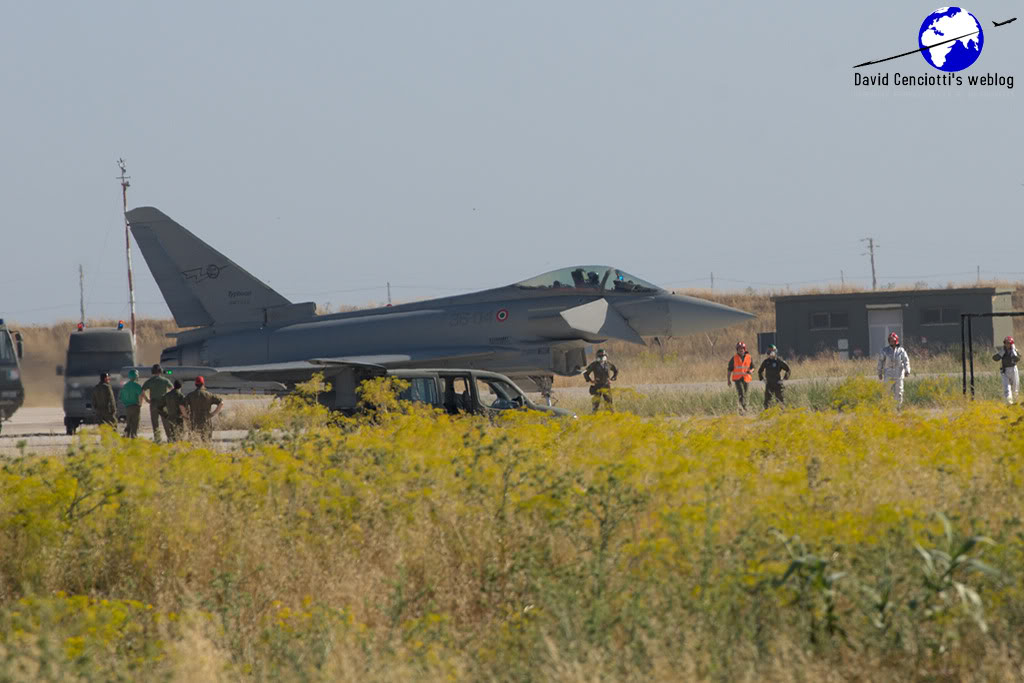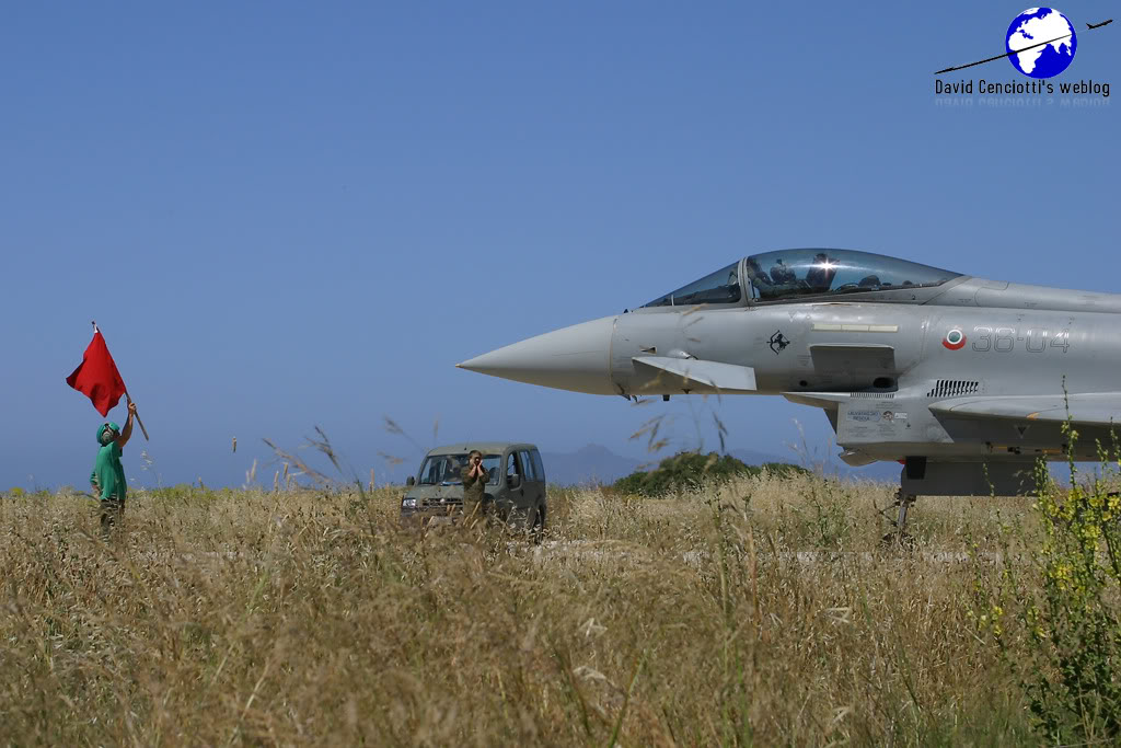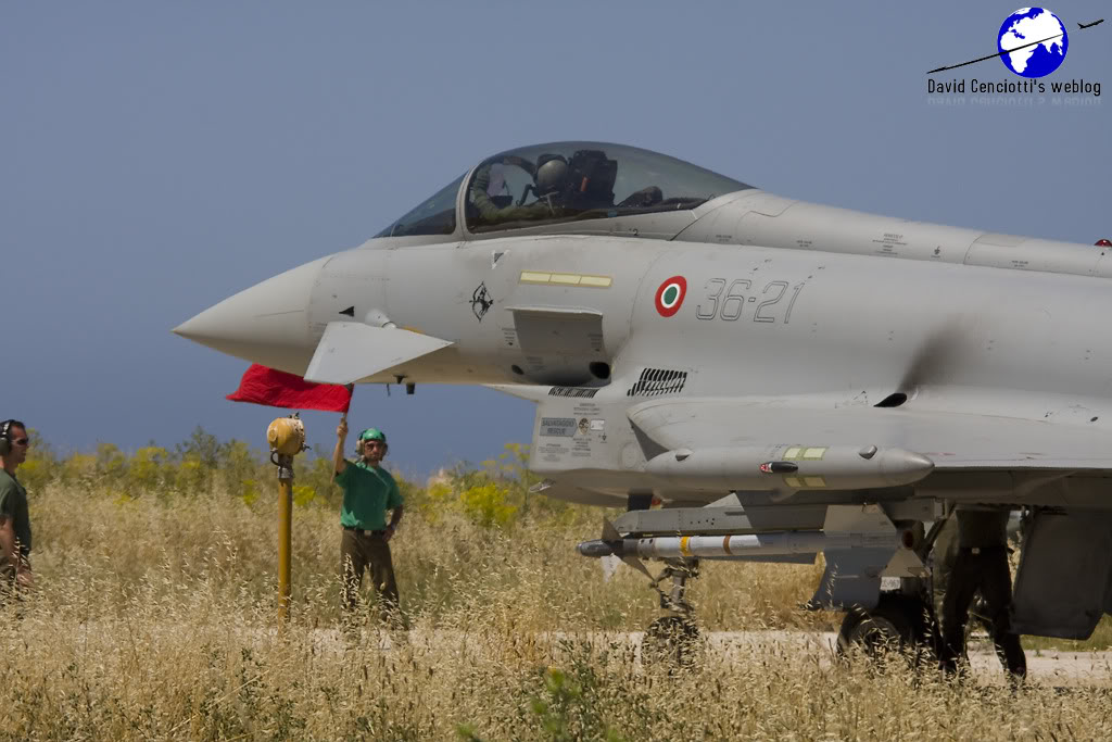 The mini-airshow held in Trapani on Jun. 8, 2009 to celebrate the first 1.000 flight hours of Maj. Salvatore Ferrara and Maj. Maurizio De Angelis (to read more about the event click Part 1, Part 2) provided the opportunity to take some pictures of the Gioia del Colle F-2000s temporary deployed to Trapani to perform firing activities in the Sardinian range (Trapani is ideal for such a kind of activity since it is located on the coast and the armed aircraft can reach the ranges overflying only the sea). The aircraft belonged to the 12° Gruppo of the 36° Stormo. During the afternoon of Jun. 8, one of them suffered a minor failure during the firing activity and was compelled to return to Trapani and perform an emergency landing as one of the pictures, taken by Giovanni Maduli, shows.