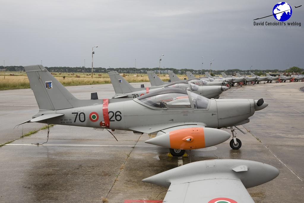 The SF-260EA of the Latina-based 70° Stormo of the Aeronautica Militare (Italian Air Force, ItAF) will soon receive a high-visibility colour scheme since the previous grey one made rejoin and formation flight a little too difficult for student pilots.