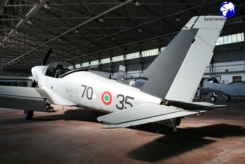 On Aug. 31, Matteo Marianeschi visited Latina and took the following pictures of two more SF-260EA being painted in the new high visibility colour scheme (read more here): MM55126 “70-35” and MM55121 “70-30”.