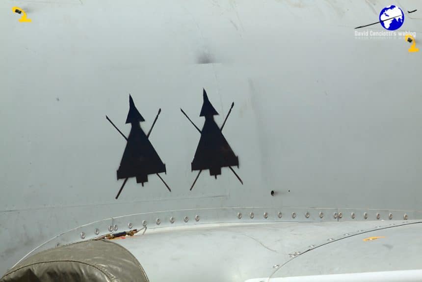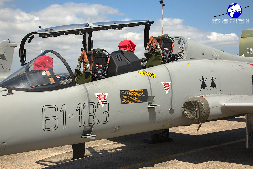 The following pictures, taken by Giovanni Maduli at Decimomannu airbase during Starex exercise have made the news and caused sensation. In fact, the kill markings on the two MB.339CDs of the 212ยฐ Gruppo of the 61ยฐ Stormo, based in Lecce-Galatina, clearly show the silhouettes of a three (2+1) F-2000 Typhoons (virtually) shot down during training engagements that took place inside the ACMI range. The kill markings were applied as a hoax but the news of the presumed kills was too much emphasized. Many talked about the presumed failure of the Typhoons and their pilots, a superficial analysis that was far from being true. Actually, the 339s played a sort of aggressor role in a so-called “Bogey scenario” that was very dangerous for any interceptor; furthermore, the F-2000s were compelled by the ROE (Rules Of Engagement) to be “visual” with the CDs within 1 or 2 miles, and had not the immediate clearance to engage “hot”. Consequently, the “Macchini” had the opportunity to shoot one or two Fox 2s (IR-guided missiles, the AIM-9L Sidewinder) thanks to both the manouvrability of the MB.339 and to the fact that the F-2000 could not use the flares. Hence, the scenario that the Typhoon had to face was extremely demanding, especially since the F-2000s were also called to “manage” some F-16s at the same time. The pilots of the 61ยฐ Stormo honestly admitted that the F-2000s obtained so many kills on the MB.339s that there would have been not enough space on their fuselages to draw them all!