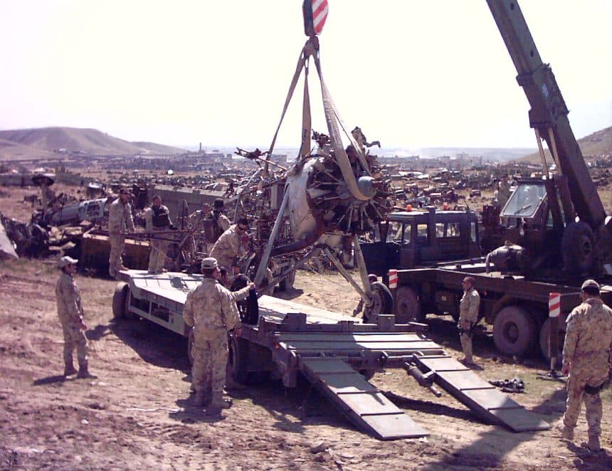 I was the garrison commander at the Kabul Military Training Center and “neighbor” to the Italian garrison at Camp Invicta. Their garrison commander, LTC Mauro D’ Ubaldi, and I became friends through mutual security needs and engineer projects. He approached me and asked if I would help his team come onto our site and remove from the boneyard the flight of planes where this plane came from (another photo shows how it was in the boneyard and a detail of a data plate).