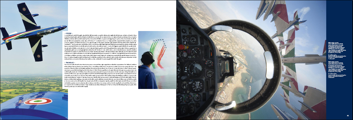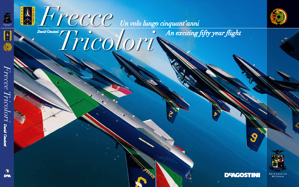 Sarà disponibile a partire dai primi di settembre, il mio libro, edito dalla DeAgostini, con il contributo della Aviator Edizioni, sulle Frecce Tricolori, pubblicazione ufficiale dell’AM per il 50° Anniversario della PAN. Si tratta di uno spettacolare volume fotografico di 128 pagine, nel formato chiuso 44 x 30 cm, che celebra i 50 anni di attività delle Frecce Tricolori, la pattuglia acrobatica dell’Aeronautica Militare. Simbolo delle eccellenti capacità tecniche e professionali della Forza Armata e dell’Italia, la Pattuglia Acrobatica Nazionale è, per unanime giudizio, una delle migliori formazioni acrobatiche del mondo, l’unica a volare con dieci velivoli. Erede di una lunga tradizione nell’acrobazia aerea collettiva, che ebbe nei “saltimbanchi” del 1° Stormo Caccia di Campoformido la sua prima espressione, la PAN vola un programma altamente tecnico e spettacolare che da mezzo secolo richiama folle entusiaste di spettatori in Italia e all’estero. Ma quali sono i segreti della Pattuglia Acrobatica Nazionale? Chi sono gli uomini e quali i mezzi che hanno reso celebri le Frecce? Come vengono selezionati e in che modo vengono addestrati i nuovi piloti? Come viene organizzata un’esibizione e come sono nate le figure che emozionano e tengono con il fiato sospeso migliaia di spettatori? A queste e a moltissime altre domande risponde, con contenuti inediti e immagini esclusive, la pubblicazione ufficiale dell’Aeronautica Militare per il cinquantenario delle Frecce Tricolori.