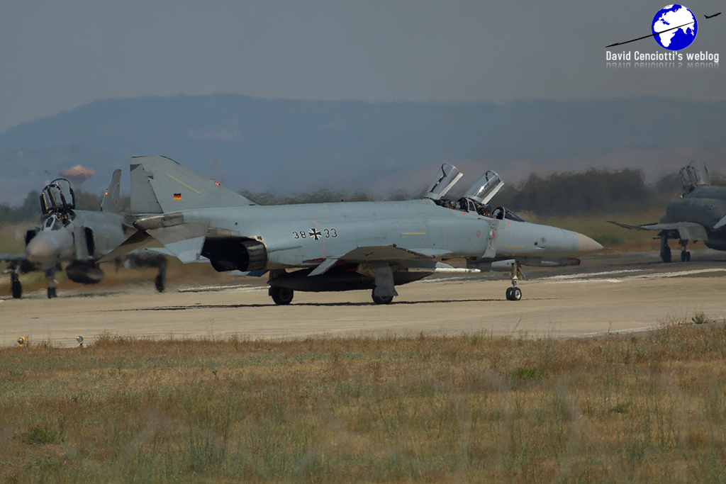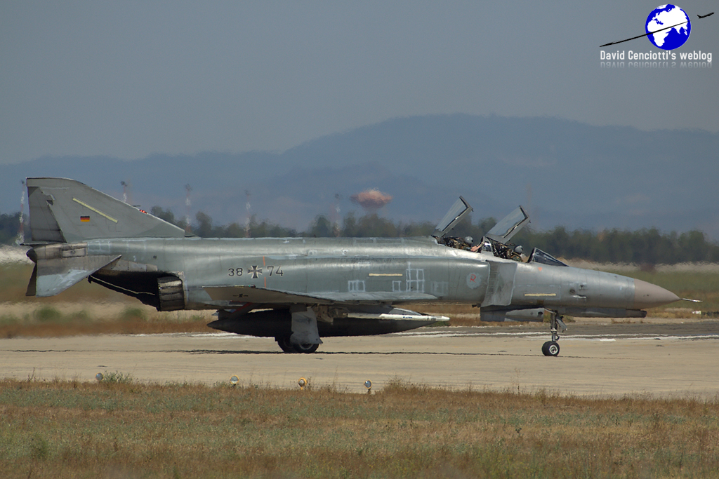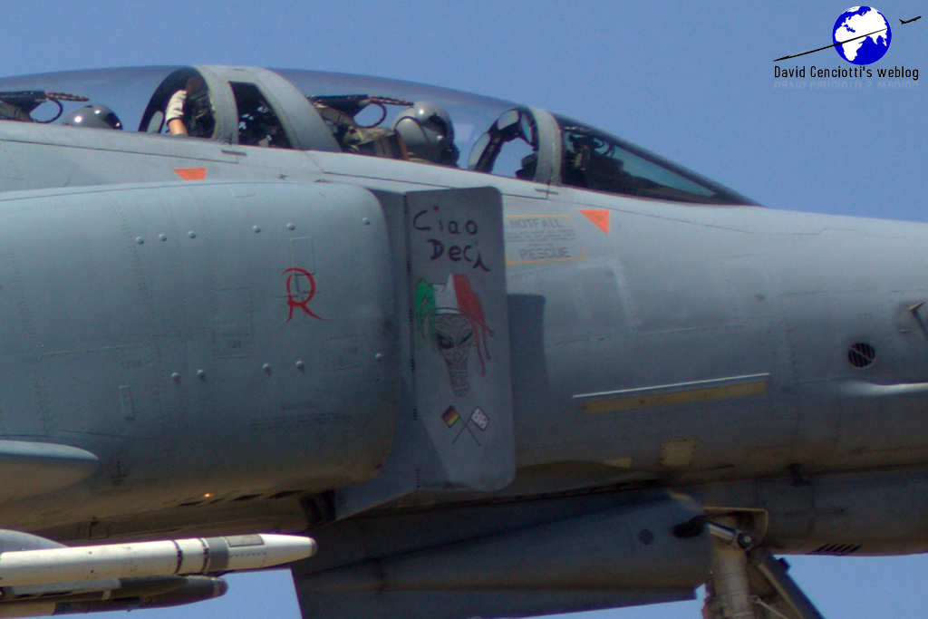 14 F-4 Phantom belonging to the JG71 of the German Air Force have been operating from Decimomannu airbase, in Sardinia from Aug. 2, 2010. Most probably, this will be the the last F.4 deployment in Italy for the German Phantoms, as they are expected to cease the operations at Wittmund airbase next year. The F-4s were joined by 2 A-4s of the BAE Systems (former Israeli Air Force Skyhawk that replaced the F-100Fs in 2002) employed for target-towing during gunnery practice, that landed in Deci on Aug. 17 and will be operating along with the Phantoms until Sept. 16, 2010, when the detachment is expected to leave. One of the JG71 birds, the special coloured “37+75” was handed over as a base gate guardian.