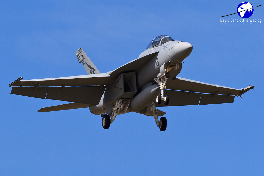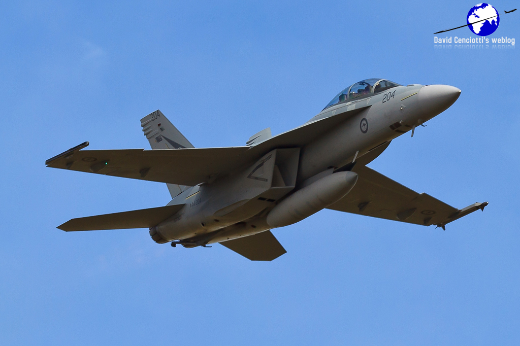 The Annual Defence Force Airshow took place at RAAF Williamtown on Sept. 18 and 19. Williamtown is Australia’s largest fast jet base and home to the RAAF’s fighter force. The show marked a number of significant events. Both Nos.1 and 6 Squadrons based at Amberley are transitioning to the F/A-18F Super Hornet – “Rhinos” in place of the long serving F-111C. The first of the new jets arrived in country in March and 1 Sqn currently has 11 of its planned complement of 12. IOC is set for years end. Williamtown was the type’s public debut. 1 Sqn brought 4 jets; A44-208 for the static, A44-204 & A4-207 for the flying display and A44-209 as spare.