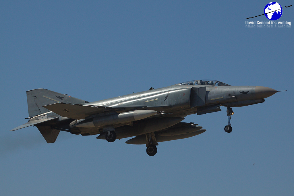 Even if it was initially expected to come to an end on Sept. 16, the German F-4 Phantoms of the JG71 detached to Decimomannu airbase, home of the ItAF AWTI (Air Weapons Training Installation) since Aug.2 headed back to Wittmund earlier, in the morning of Sept. 15 (although four examples remained in Sardinia for a few more days along with 2 A-4s of the BAe Systems). Giovanni Maduli was there once again on Sept. 15 to witness the departure of the (maybe) last German Phantoms deployment in Deci. Noteworthy, among the departing F-4s, the 38+46, wearing the special “swallows” markings on both sides of the fuselage (to “celebrate” the successful survival of the mighty “Rhino” to multiple bird strikes during a recent exercise) returned to landing for an unknown emergency shortly after departure.