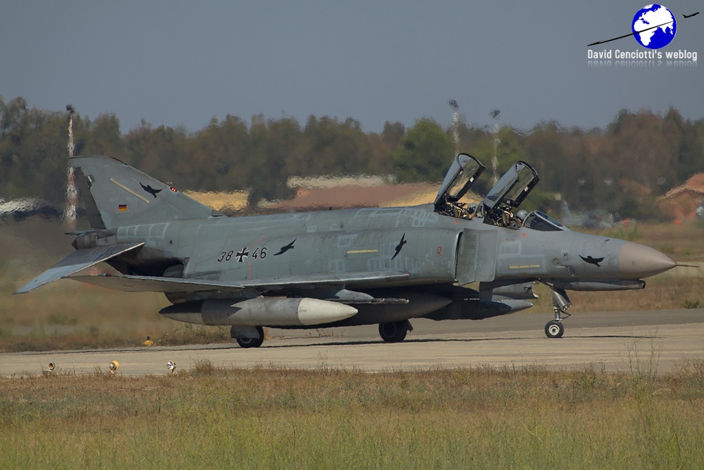 Even if it was initially expected to come to an end on Sept. 16, the German F-4 Phantoms of the JG71 detached to Decimomannu airbase, home of the ItAF AWTI (Air Weapons Training Installation) since Aug.2 headed back to Wittmund earlier, in the morning of Sept. 15 (although four examples remained in Sardinia for a few more days along with 2 A-4s of the BAe Systems). Giovanni Maduli was there once again on Sept. 15 to witness the departure of the (maybe) last German Phantoms deployment in Deci. Noteworthy, among the departing F-4s, the 38+46, wearing the special “swallows” markings on both sides of the fuselage (to “celebrate” the successful survival of the mighty “Rhino” to multiple bird strikes during a recent exercise) returned to landing for an unknown emergency shortly after departure.