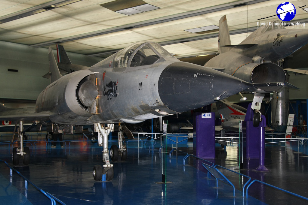 the Mirage III V-01, the LEDUC 010 and the Mirage G8-01. Anyway, the collection is huge and there are so many interesting examples that I suggest you having a look at the following site for a complete list: http://www.aviationmuseum.eu/World/Europe/France/Paris-Le_Bourget/Musee_de_l_air.htm (beware, serials/codes are not correctly aligned with the aircraft type!).