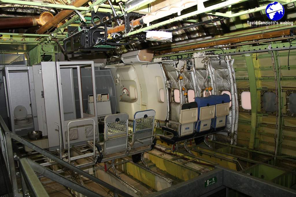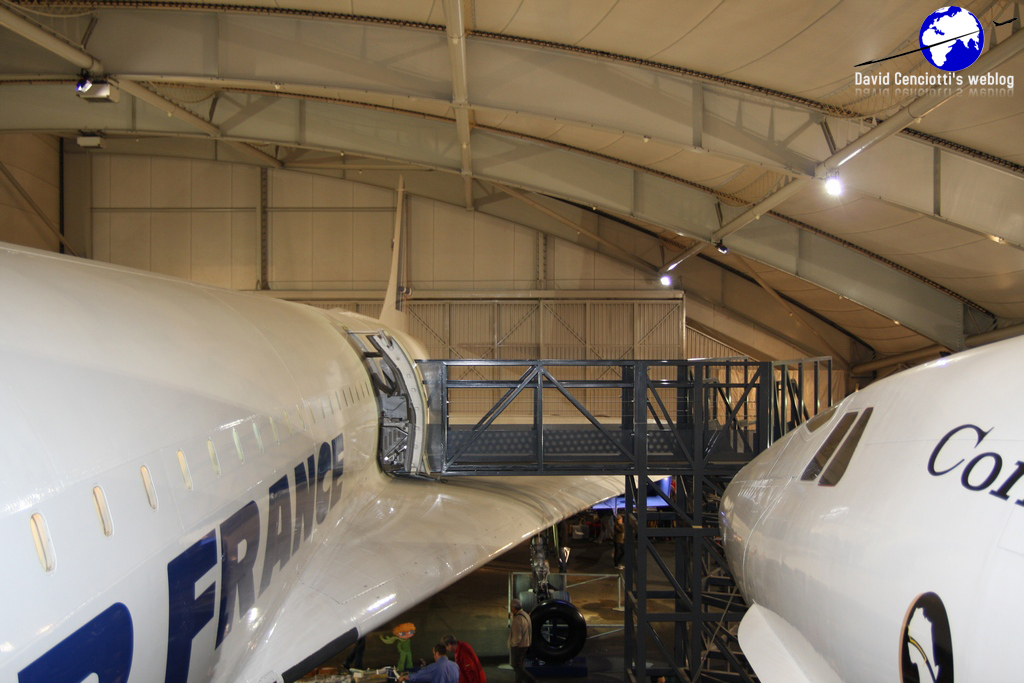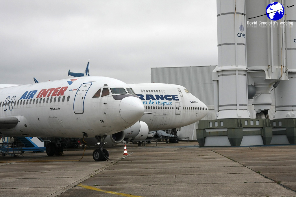 Admittance is free, but you have to pay a ticket if you want to make a tour inside an Air France B747-128 (F-BPVJ, performing last commercial flight Beirut-Paris on Feb. 10, 2000), in an American DC-3 or in the two Concorde planes that you can find in the Concorde hall of the Museum (that, to me, alone, were worth the visit): the prototype 001 “F-WTSS”, that made its maiden flight on Mar. 2, 1969, piloted by André Turcat and Jacques Guignard and was retired from service after 397 test flights and 812 flight hours (255 supersonic ones); and the Concorde F-BTSD Sierra Delta, one of the last of such type to fly with Air France, that was retired to the Museum on Jun. 14, 2003, 13 days before the last flight of the Fox Charlie (F-BVFC) the last Air France Concorde that landed in Toulouse on Jun. 27, 2003. The two aircraft are parked side-by-side so you can easily esteem the different internal and external layouts. The F-WTSS prototype wears the “Eclipse Solaire 1973” badge that recalls the historic solar eclipse of Jun. 30, 1973, an event that seven scientists were able to follow for 74 minutes from inside a Concorde fitted as a flying laboratory that, taking off from Las Palmas, Canaries, for the special flight flew within the dark area at supersonic speed at 17.000 meters above Mauritania, before landing in Fort-Lamy (N’Djamena), Chad.