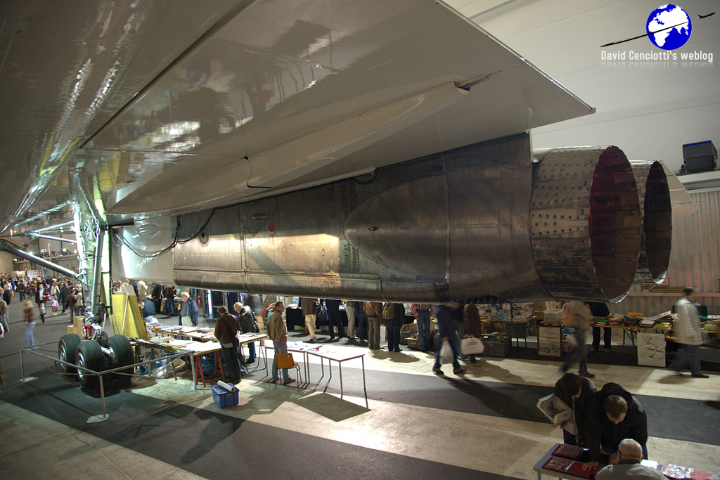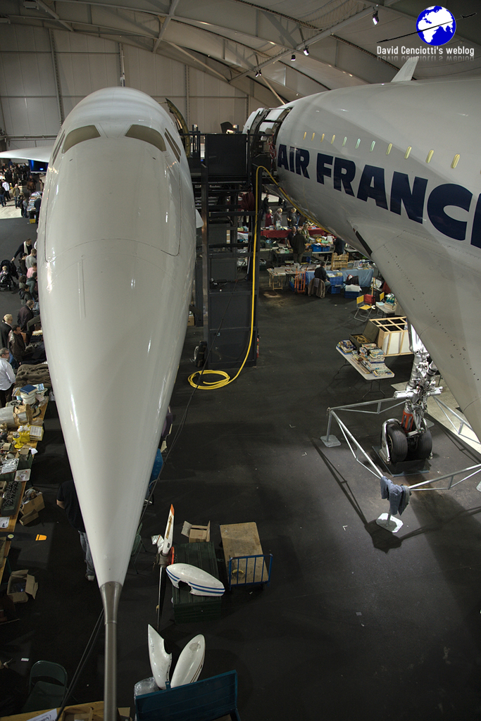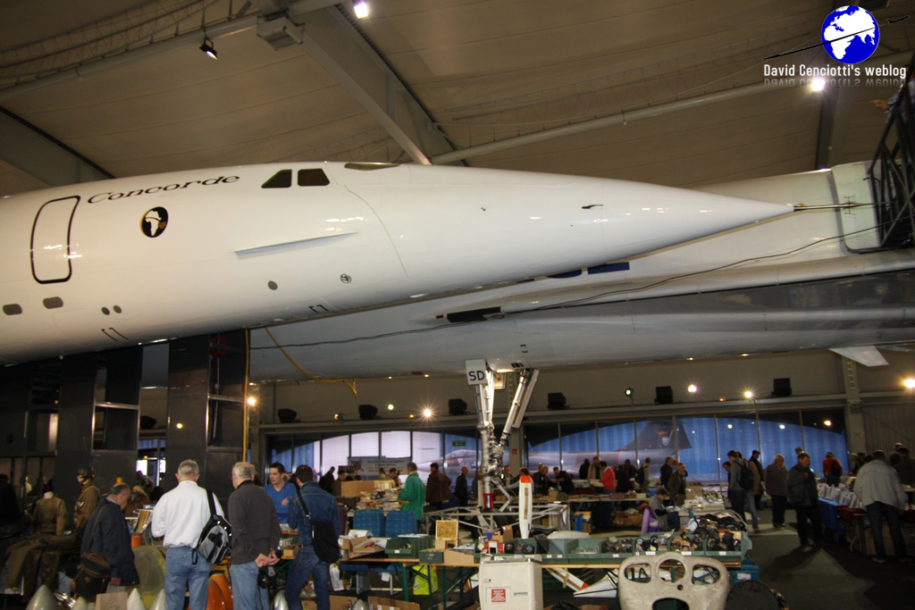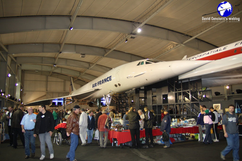 I organized my trip to the museum during Aéropuces 2010, an annual event (hosted in the Concorde hall, as the pictures show) for buying, selling, trading aviation items: models, books, magazines, patches, aviation art, military and civil aircraft parts (control sticks, ejection seats, rudders, panels, cockpit instruments, blades, etc.), flight gear, and everything you might be interesting in collecting.