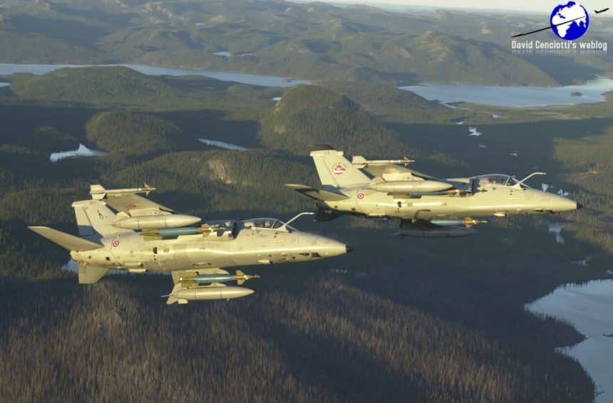 Two armed AMX flying in the Goose Bay ranges (photo by: ItAF Troupe Azzurra).