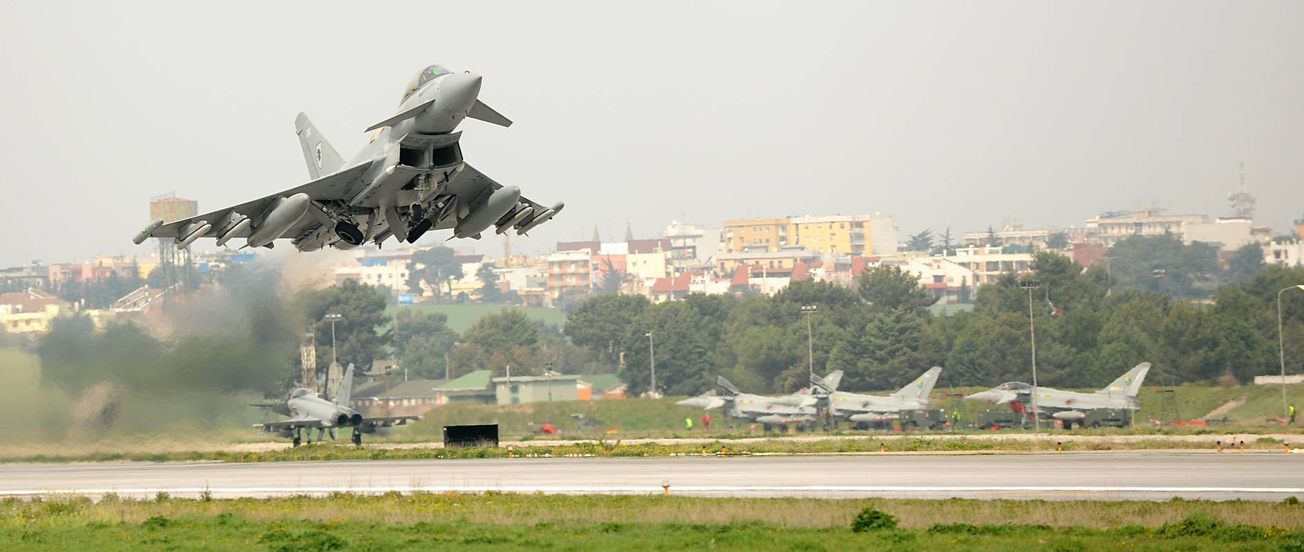 2) Italian contingent flew 6 missions (2 acft each) in the last 24 hours: 2x Tornados, 2x AV-8Bs, 2x Typhoons. Eurofighter released on the company’s official website some interesting pictures about Italian and British Typhoons involved in Unified Protector (the one above, showing a RAF Typhoon taking off from Gioia del Colle comes from Eurofighter webpage too).