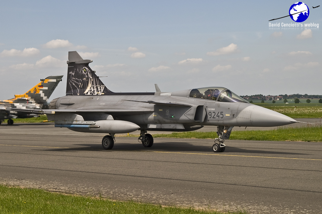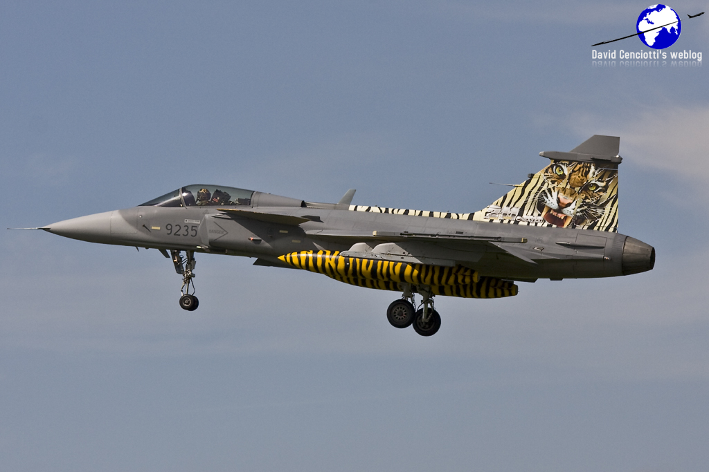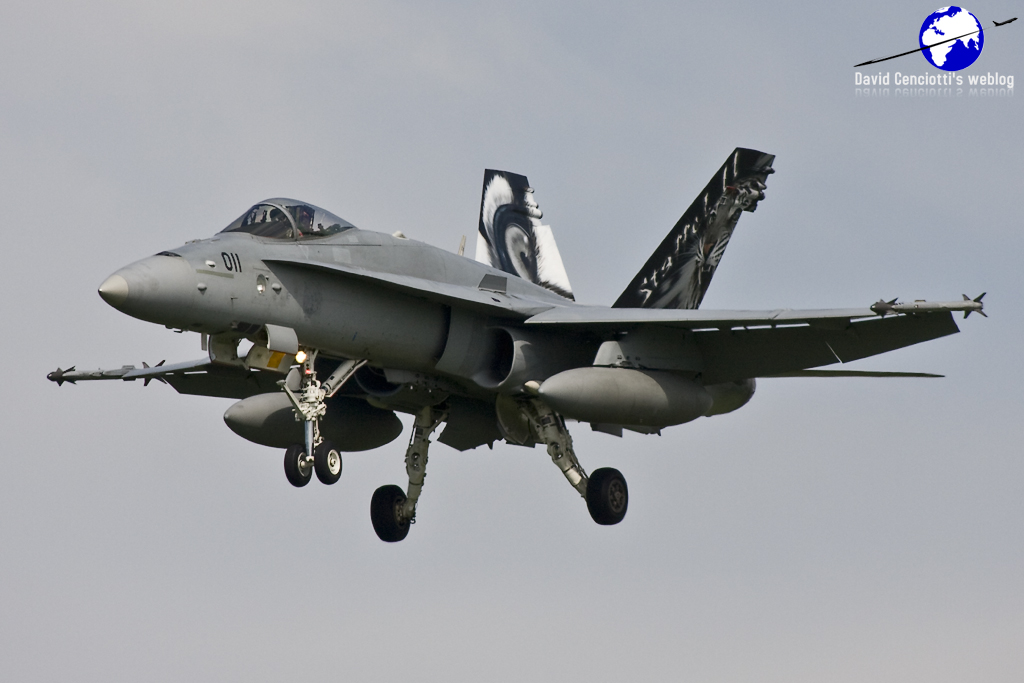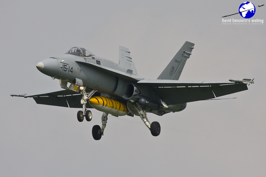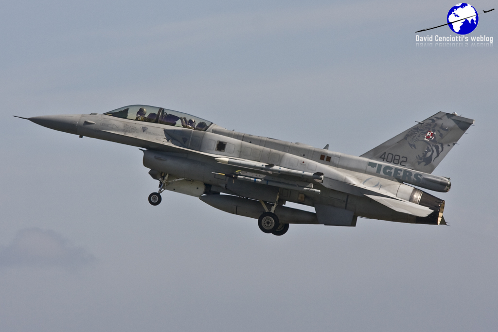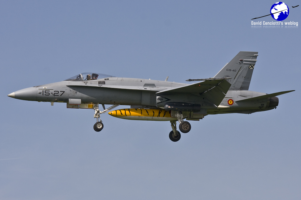 Nevertheless the NTM lived up expectations with some interesting participants: the F-16 Block 52 of the Polish Air Force’s 6 Sqn from Poznan, equipped with AIM-120, AIM-9X, JHMCS (Joint Helmet Mounted Cueing System) and Sniper pod, at their first appearance at the Tiger Meet; the Spanish Air Force EF-18s carrying the IRIS-T air-to-air missile at wingtips; the Swiss Hornets with AIM-9X coupled to JHMCS.