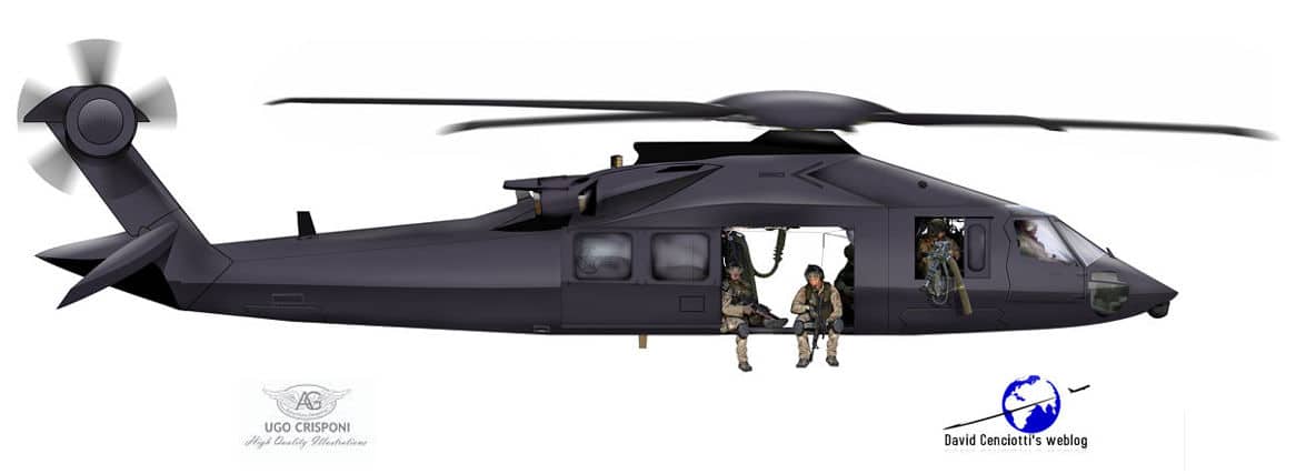 This is how the Stealth Black Hawk (dubbed also “Silent Hawk”) could look like based on the analysis of all the information available to date. It is sensibly different from the previous sketch; if you read below you’ll understand why.