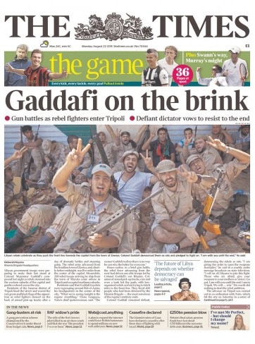 b) Gaddafi (“Gathafi” according to his passport, found inside the Bab al-Aziziya bunker along with his hat, an album filled with photos of Condoleeza Rice) is not going to give up. Soldiers and snipers aside, he still manages a wide network of loyal intel officers that keep him very well informed about the rebels and the NTC. Some are believed to be also infiltrated among the rebel ranks. Obviously, until he’s captured, dead or alive, the rebels can’t declare a victory.