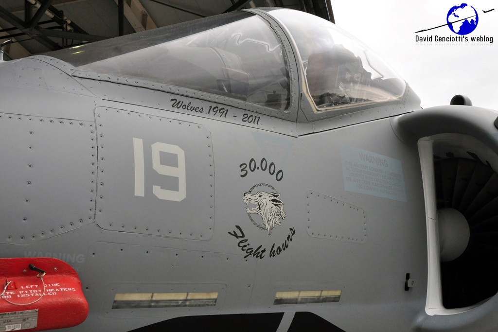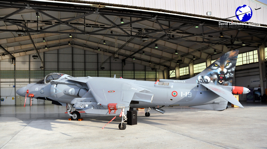 As the following pictures taken by Raffaele Fusilli show, besides the Wolf (emblem of the squadron) painted on the tail, the aircraft (MM7224/1-19) wears the “30,000 flight hours” stencils just below the cockpit to mark the hours logged by the only Italian Navy squadron equipped with the Harrier since it received the aircraft in 1991.