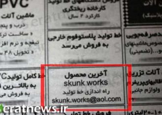 According to the Tehran Times, the advertisment reads: “The latest product of Skunk Works ready to be launched.”