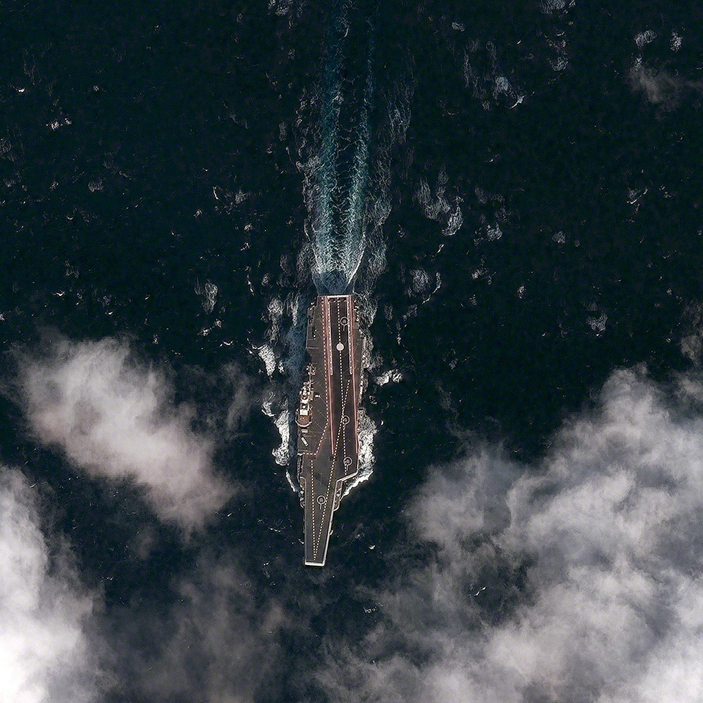 Taken in the Yellow Sea on Dec. 8, 2011, this images from the DigitalGlobe Analysis Center depicts the Chinese aircraft carrier Varyag during it’s second sea trial in the Yellow Sea, approximately 100 kilometers south-southeast of the port of Dalian. Although testing activities with embarked planes began on Aug. 11, 2011, no plane appears on the flight deck of the Varyag.