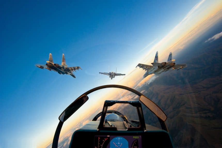 However, the image taken byย Sergio j. Padrรณn from the backseat of a Venezuelan Air Force Su-30MkII flying the slot position of a four-ship formation is not only extremely beautiful and interesting, but also rarer, although it was taken (according to the author’s Flickr profile) in December 2009.