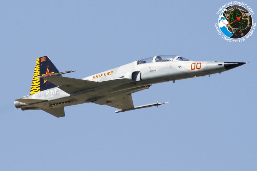 The Franken-Tiger is a hybrid plane, made with the cockpit of an F-5F and the rest of the airframe coming from a former Swiss Air Force F-5E. It is used by the U.S. Navy aggressor’s squadron to provide “adversary services” during Weapons and Tactics Instructor (WTI) courses.