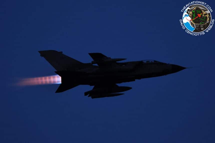 Here’s what a flight of Italian Tornados taking off from Decimomannu airbase for a night mission looks like.