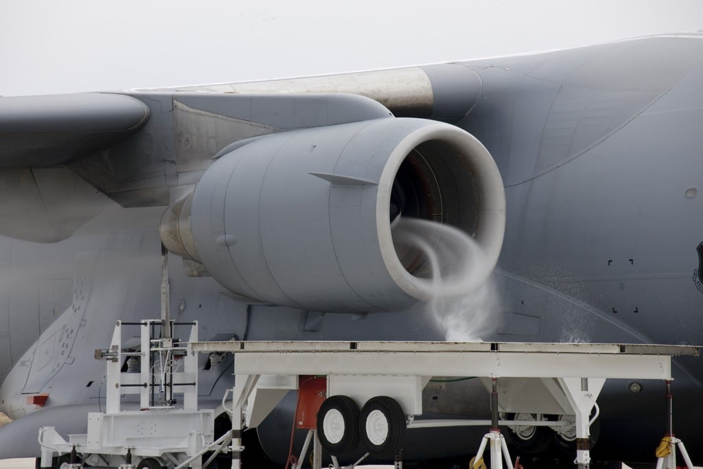 During one of these health monitoring tests, water was intentionally sucked by a U.S. Air Force C-17 (tail #87-0025) with the impressive results you can see in the image below.