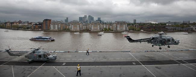 Therefore, on May 4, the helicopter carrier made its way up the River Thames with eight Lynx choppers belonging to both the Royal Navy and Army on board.