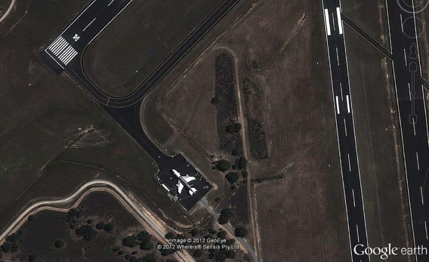 The Jumbo (belonging to the fictional Emu Airlines) can be spotted from the satellite on a dedicated parking spot next to the runway 05 threshold, at the following coordinates: -31ยฐ 40′ 27.29″, +116ยฐ 0′ 40.07″.