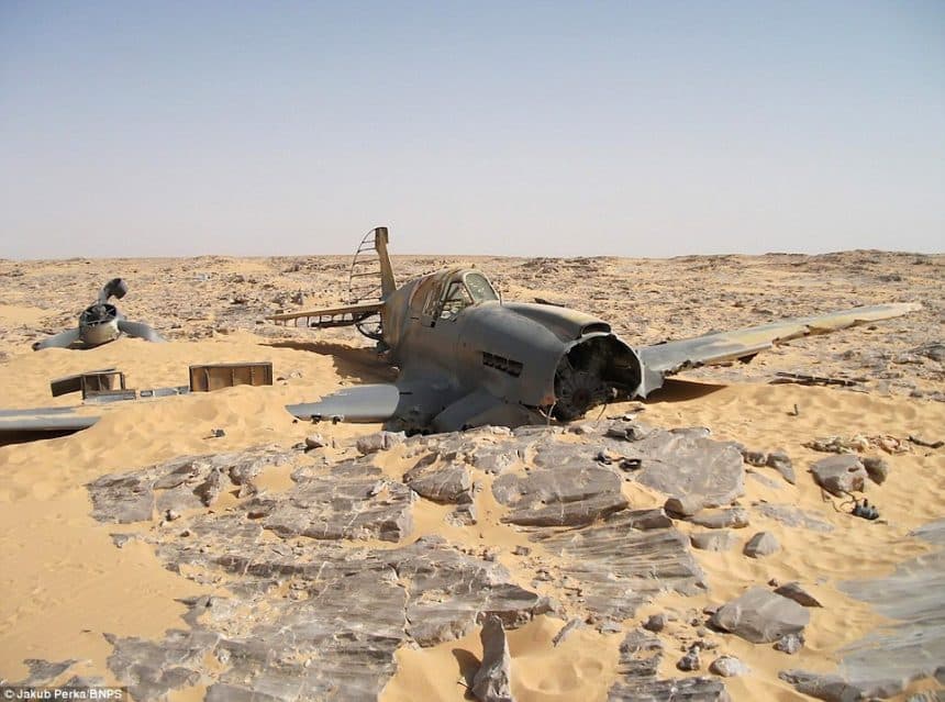 Polish oil company worker Jakub Perka was exploring a remote region of the Western Sahara desert in Egypt when he stumbled across a plane, later identified as a UK’s Royal Air Force P-40 Warhawk, almost intact and untouched, that went missing in 1942, during WWII.
