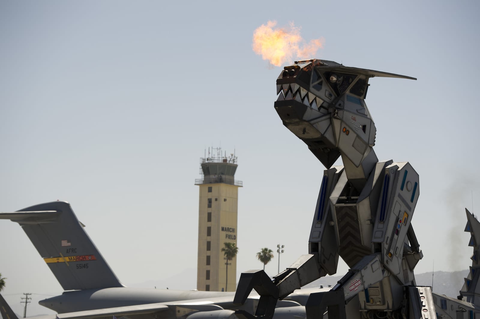 On May 20, Robosaurus performed at March Air Reserve Base, California, home of the 452d Air Mobility Wing (452 AMW), during the 2-day March Field AirFest 2012 air show.