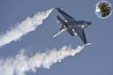 On Jun. 2, the Belgian Air Component F-16 solo demo team performed a pyrotechnic air display during the rehearsals of the Rome International Air Show 2012.