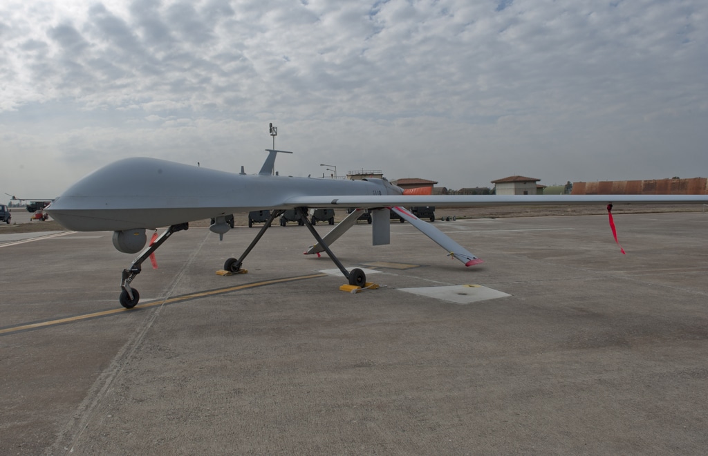 An MQ-1B Predator from the 414th Expeditionary Reconnaissance Squadron sits on the flightline Feb. 14, 2012, at Incirlik Air Base, Turkey. (U.S. Air Force photo) Note the lack of markings on this drone: a typical feature of robots operating in “hot areas.”