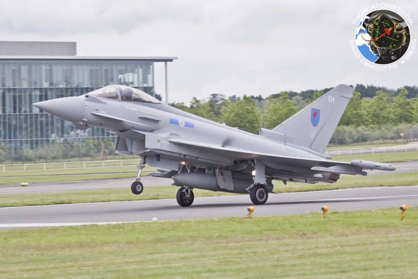 Eye witnesses stated that the fighter jet took off and performed a near vertical climb out from the base. Whilst the Typhoon thundered into the late afternoon skies a second taxied to the end of the runway as a spare.