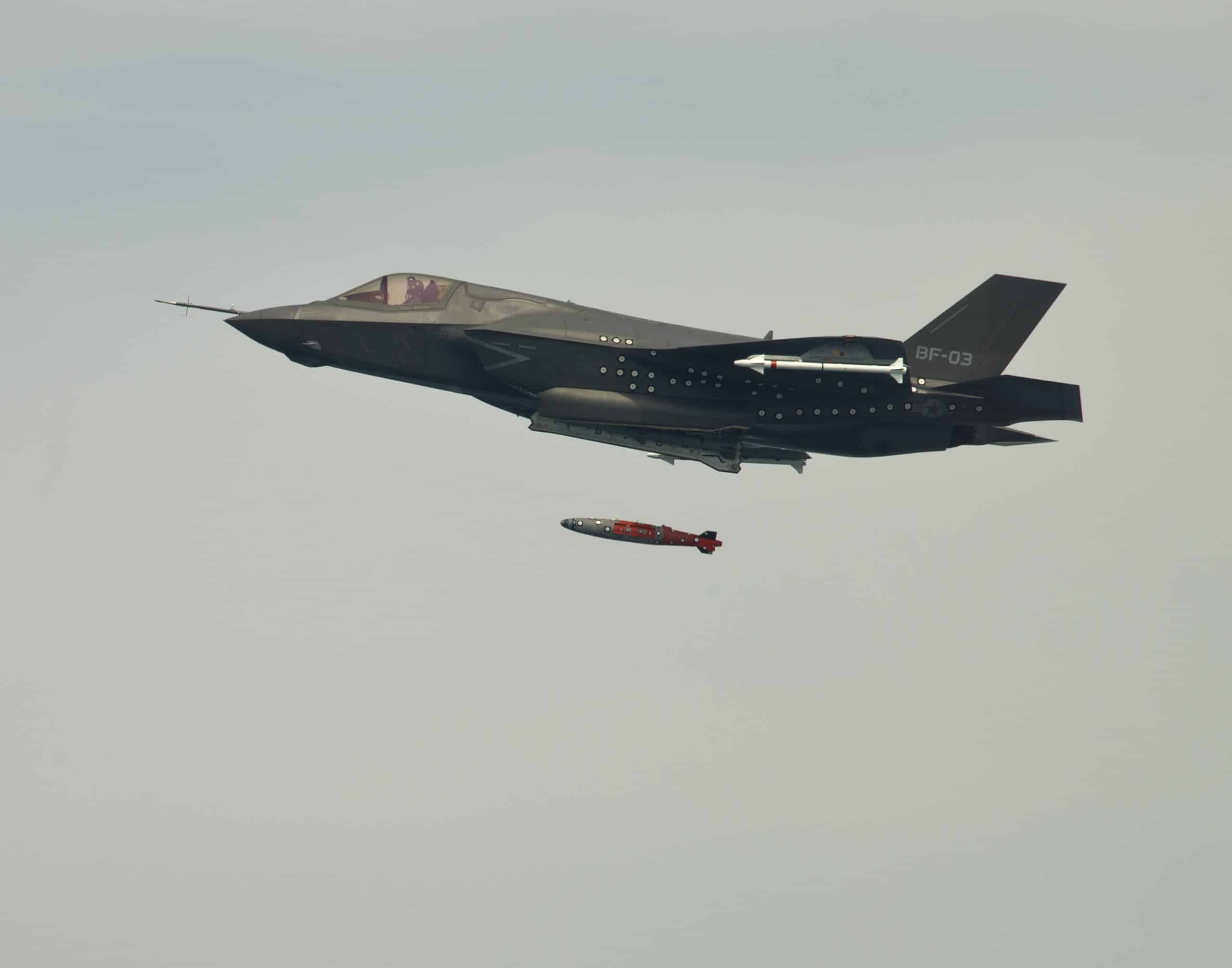 Traveling at 400 knots at an altitude of 4,200 ft, F-35 BF-3, a STOVL (short take-off and vertical landing) JSF variant, released an inert 1,000 lb GBU-32 Joint Direct Attack Munition (JDAM) separation weapon over water in an Atlantic test range.