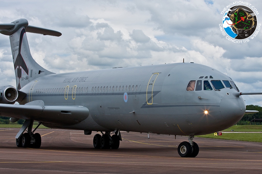 To celebrate fifty years of the VC-10, the 95th anniversary of 101 Squadron and 30 years since the first K2 entered service in the air-air refuelling role, the RAF flew three examples from their base at RAF Brize Norton in a mission that took them North to Scotland and a fly past at RAF Lossiemouth then on to RAF Leuchars. A flight South saw them fly over Newcastle Upon Tyne, RAF Scampton, RAF Waddington, RAF Cranwell, RAF Coningsby, RAF Marham and finally retuning to RAF Brize Norton where the trio of jets did a run and break before touching down for the final time.