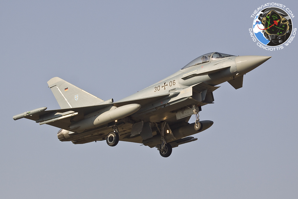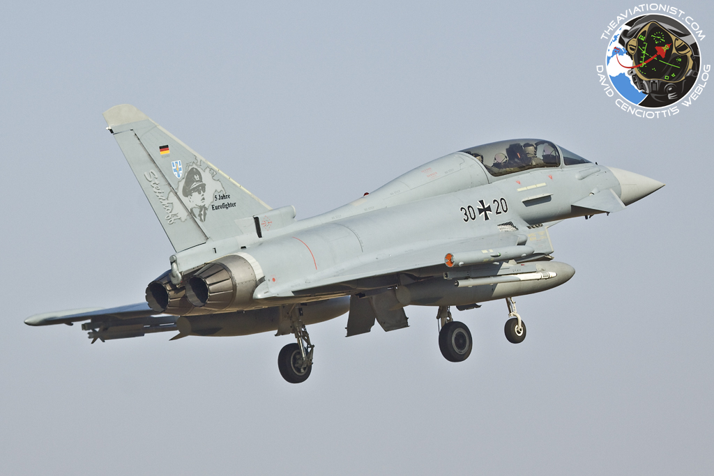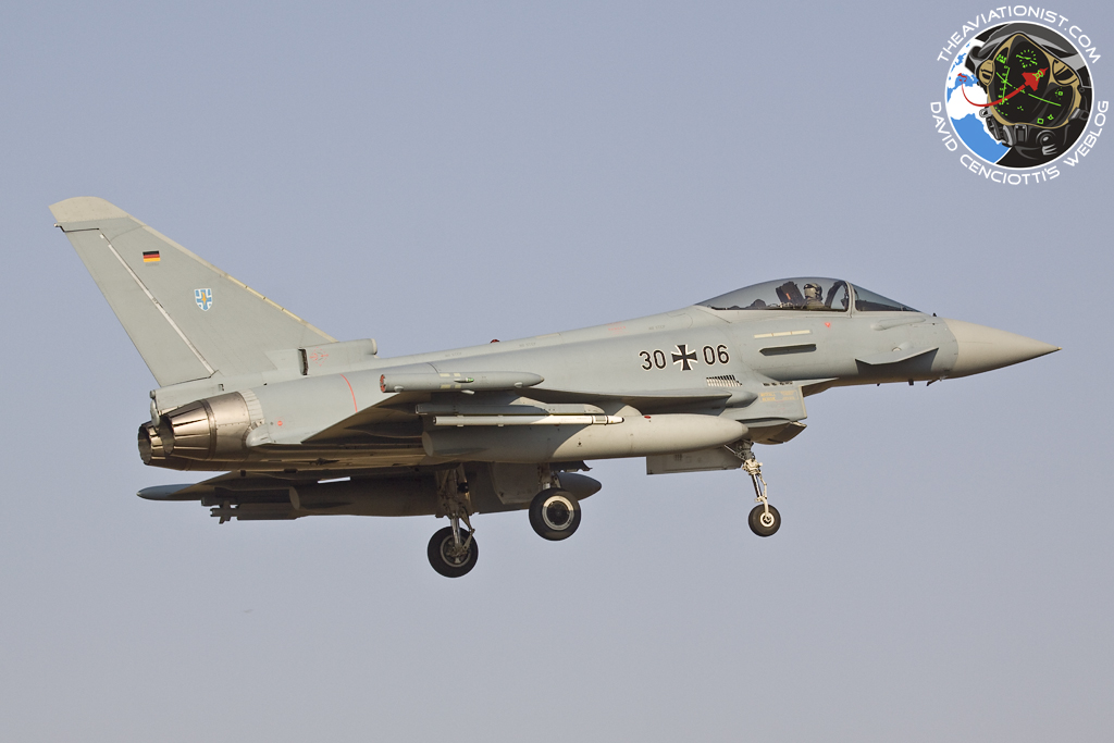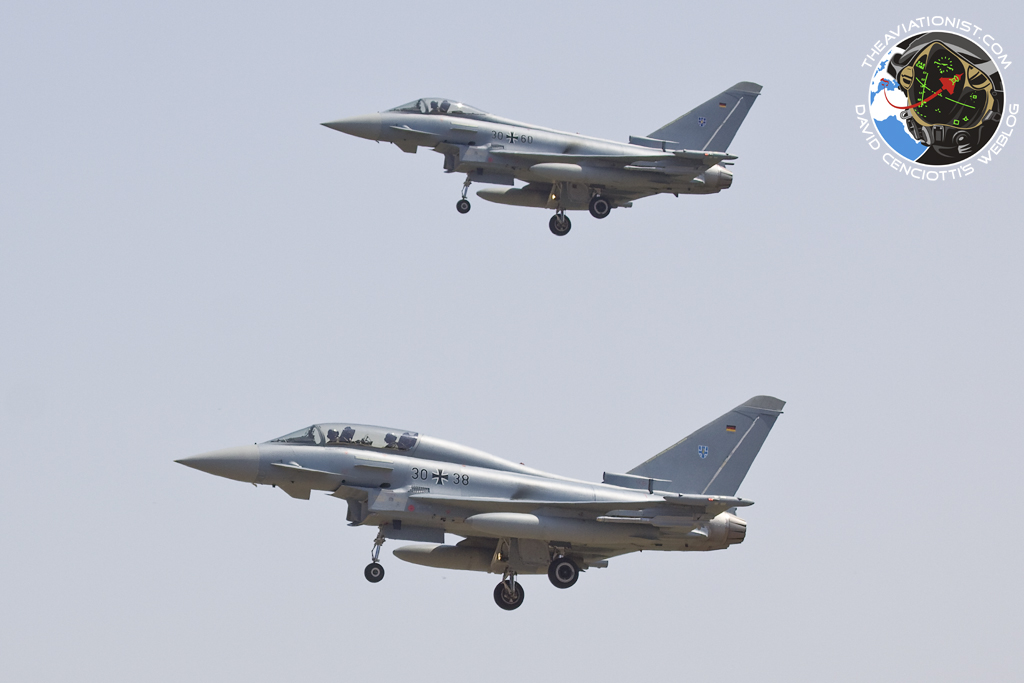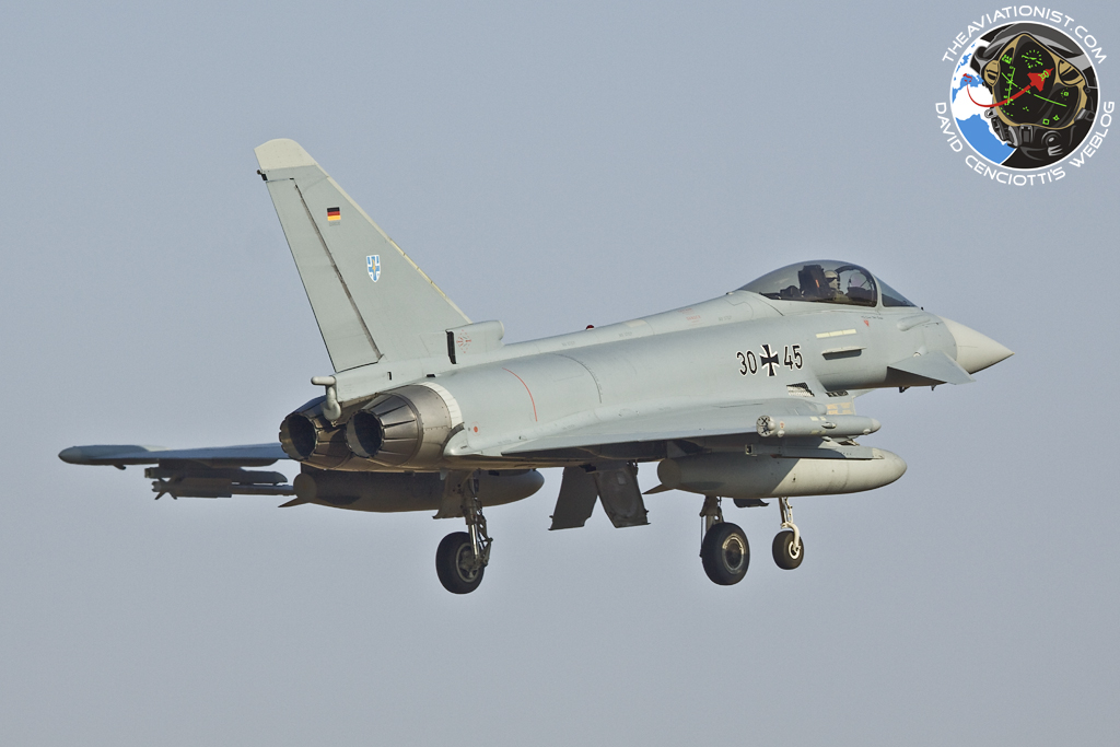 The following pictures, taken few days ago by The Aviationist’s Giovanni Maduli at Decimomannu airbase, Italy, show the German Eurofighter Typhoons of the Jagdgeschwader 73 (Fighter Wing 73) “Steinhoff” during their “summer training camp” in the Sardinia’s ACMI (Air Combat Maneuvering Installation) ranges.