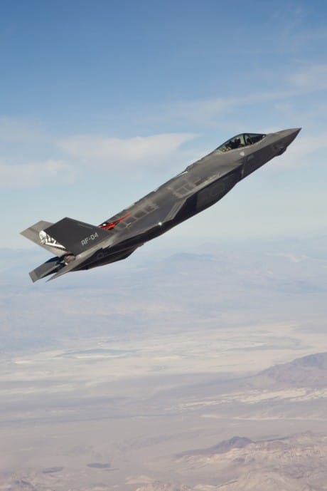A conventional takeoff and landing (CTOL) F-35A Lightning II aircraft reached a 50 degree limit on its high angle of attack (AOA) test flight conducted from Edwards Air Force Base.