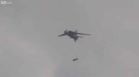 Noteworthy, at the 00:26 of the video, the Russian bomber drops what seems to be a parachute-retarded ODAB-500 thermobaric bomb before egressing the target area at high speed deploying flares to deceive IR missiles like the oneย that hit a Mil Mi-17 Hip gunship lately.