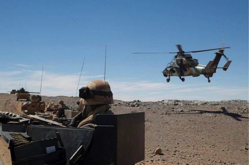 The following image shows a French Army Tigre helicopter supporting an armored column on its way to Tessalit, the northernmost location reached so far by the French troops involved in Operation Serval.